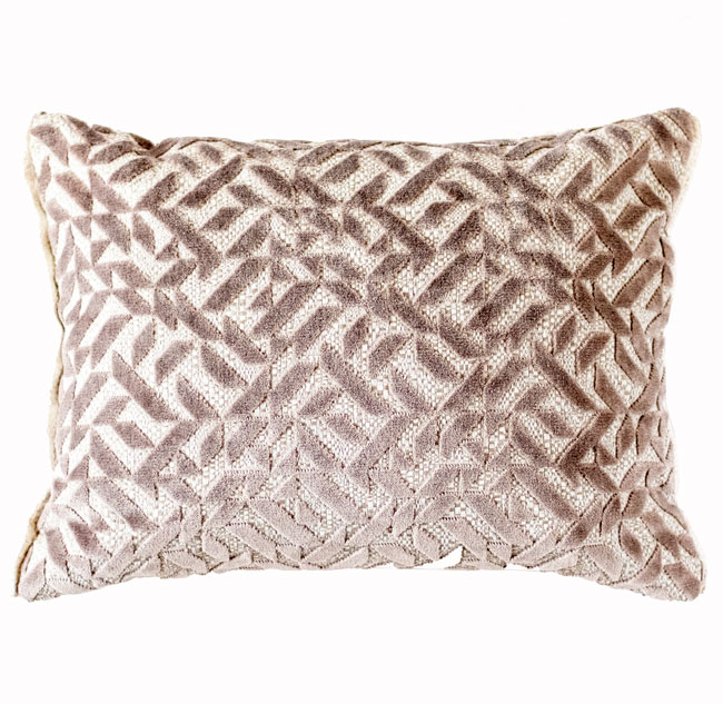 Das zeitlose, geometrische Muster auf texturiertem Webstoff erzeugt eine spannende Tiefenwirkung und sorgt für einen eleganten Schimmer.