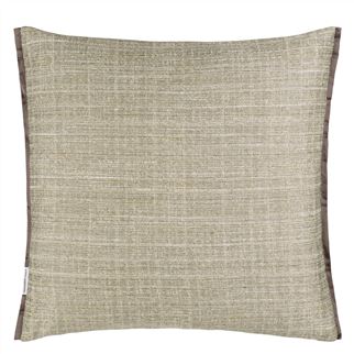 Die Rückseite ist in einem beigen Unistoff gehalten mit einer seitlichen Einfassung in taupe. Das Designers Guild Deko Kissen Manipur Oyster empfehlen wir als Akzentkissen einzusetzen.