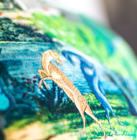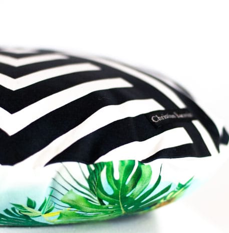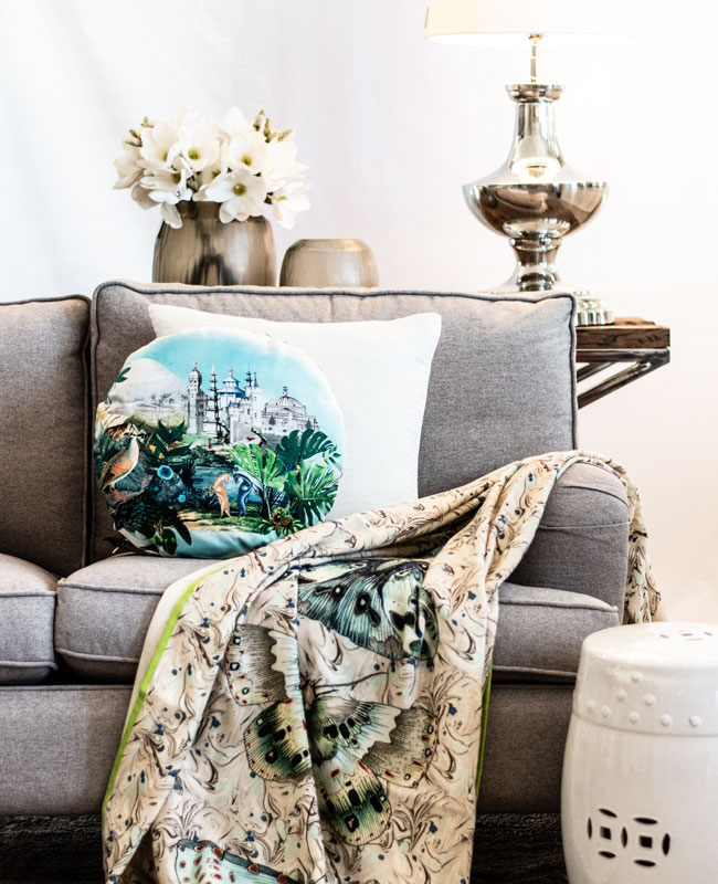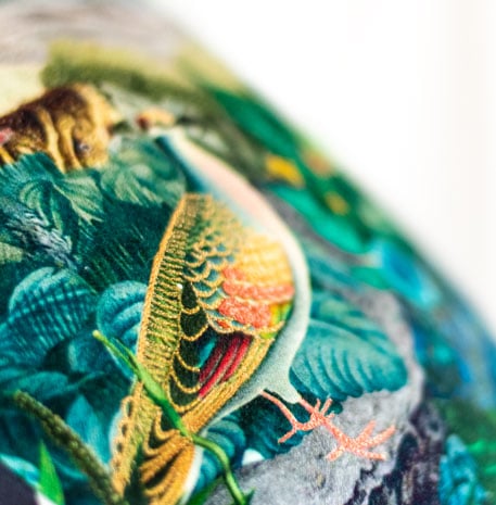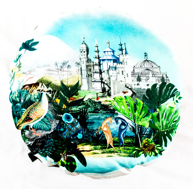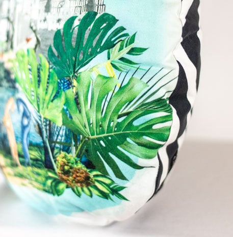 Der digitale Paradies-Print besticht als inspirierendes Statement-Kissen.