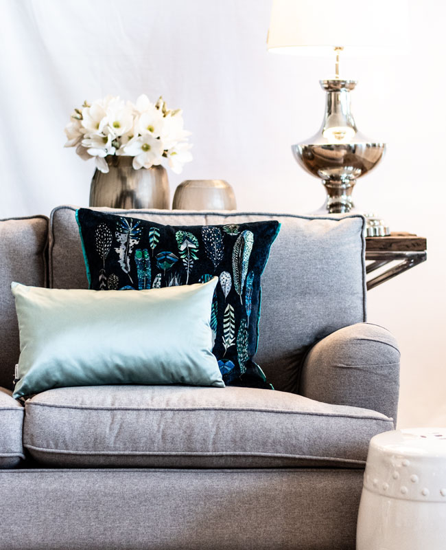 Das Trentino Teal von Designers Guild empfehlen wir als Akzent Dekokissen einzusetzen.