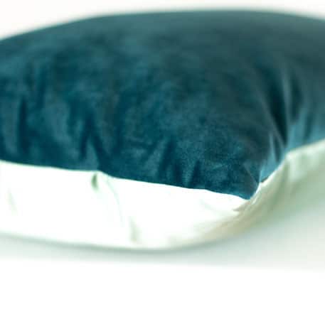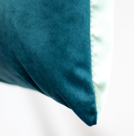 Farbton: Teal: Vorderseite: Samt in intensivem Petrolgrün I Rückseite: Glänzendes Satin in hellem Mintgrün
