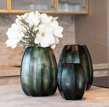 Die Guaxs Glas Vase Koonam Small indigo / smokegrey ist in weiteren Grössen erhältlich: