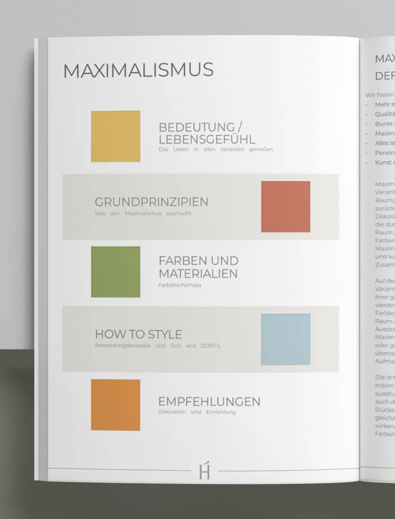 - Farben, Materialien & Muster: Lerne, wie du satte Töne, opulente Muster und spannende Texturen kombinierst, um ein stimmiges Gesamtbild zu schaffen.