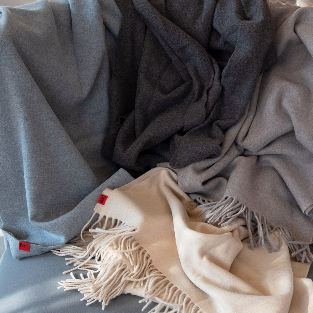 Die besonders weiche Textur aus Wolle und Kaschmir vermittelt Gemütlichkeit und Wohlfühlen und hält besonders warm.